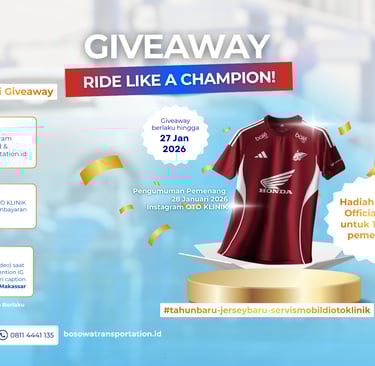 Melalui giveaway Ride Like A Champion, OTO KLINIK berharap dapat terus mengukuhkan posisinya sebagai bengkel andalan di Makassar, sekaligus menghadirkan pengalaman servis kendaraan yang profesional, terpercaya, dan penuh semangat juara.